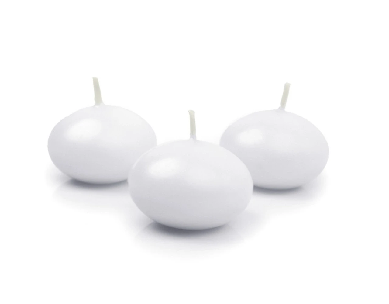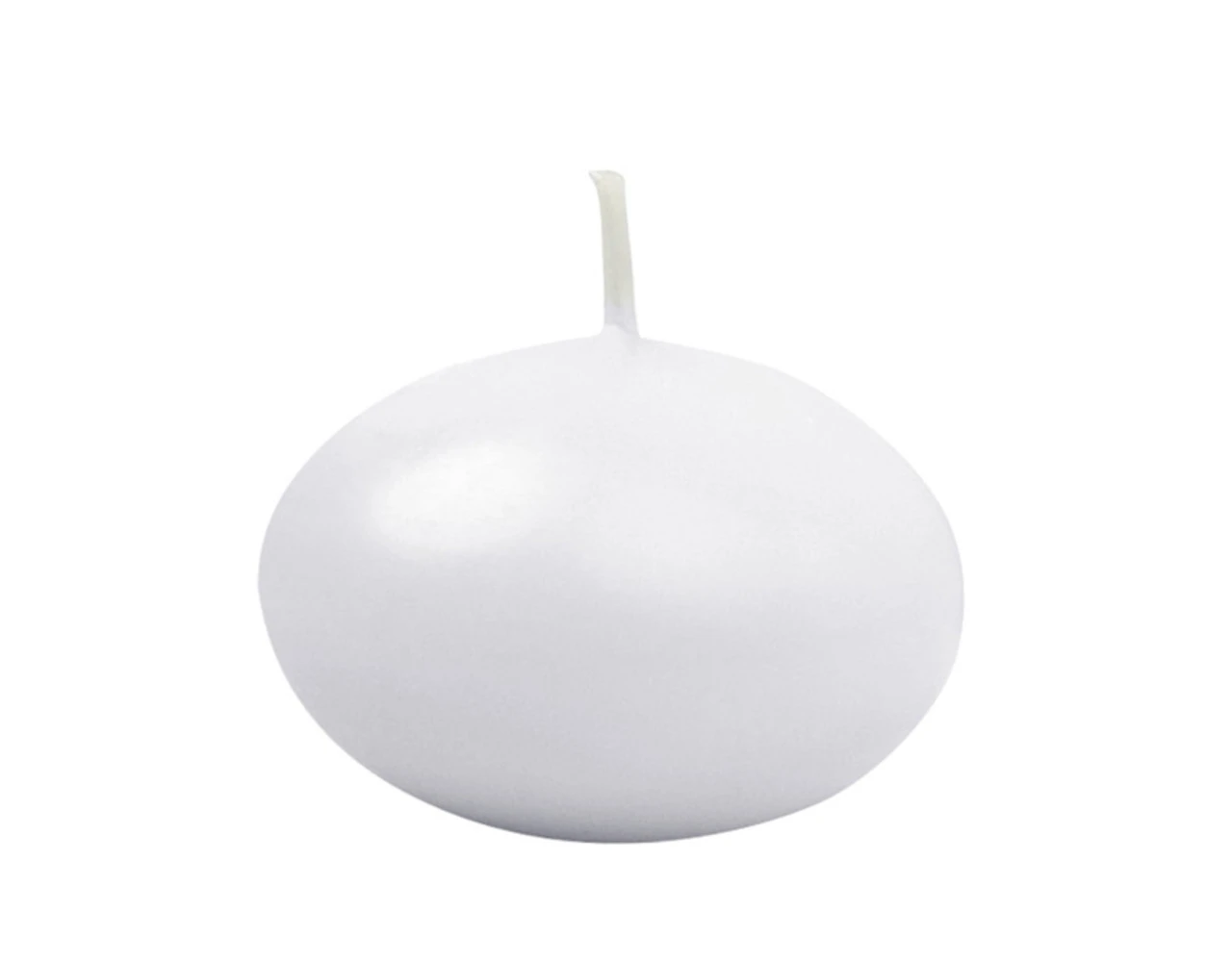 Drijvende kaarsenschijf, mat, wit, afmeting 5 centimeter. Brandduur van 1 stuk ca. 3 uur.