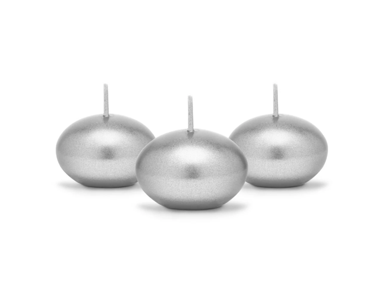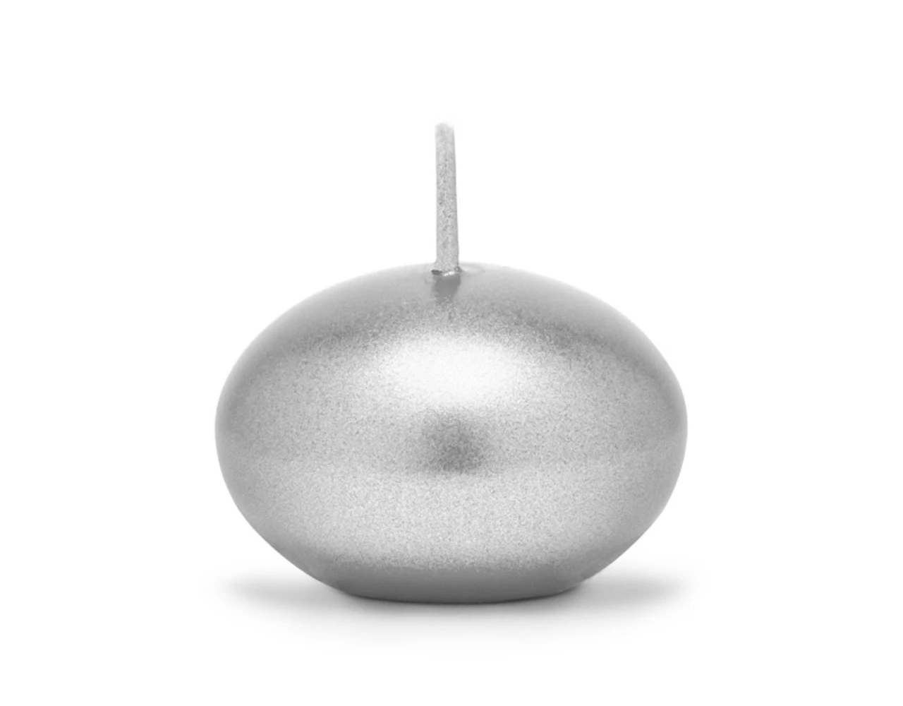 Drijvende kaarsenschijf, metallic, zilverkleurig formaat ca. 4 cm. Brandduur van 1 stuk ca. 2 uur.