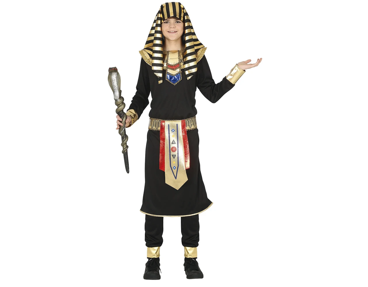 Inhoud: hoofddeksel, halssnoer, hemd, broek, riem