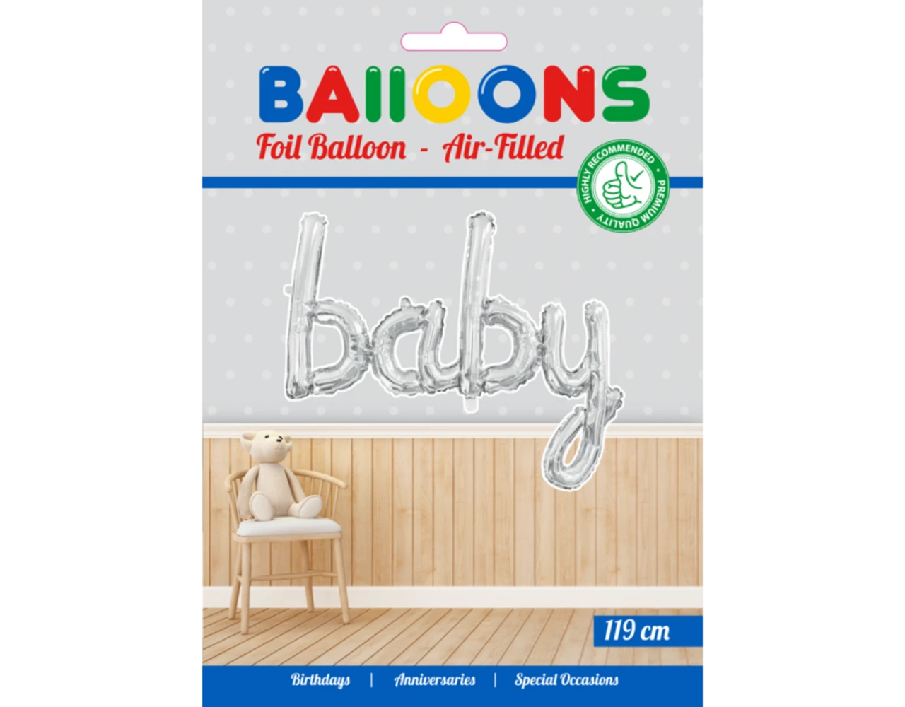 Verpakkingsinhoud: Folie Ballon Baby Zilver 1,19m leeg
