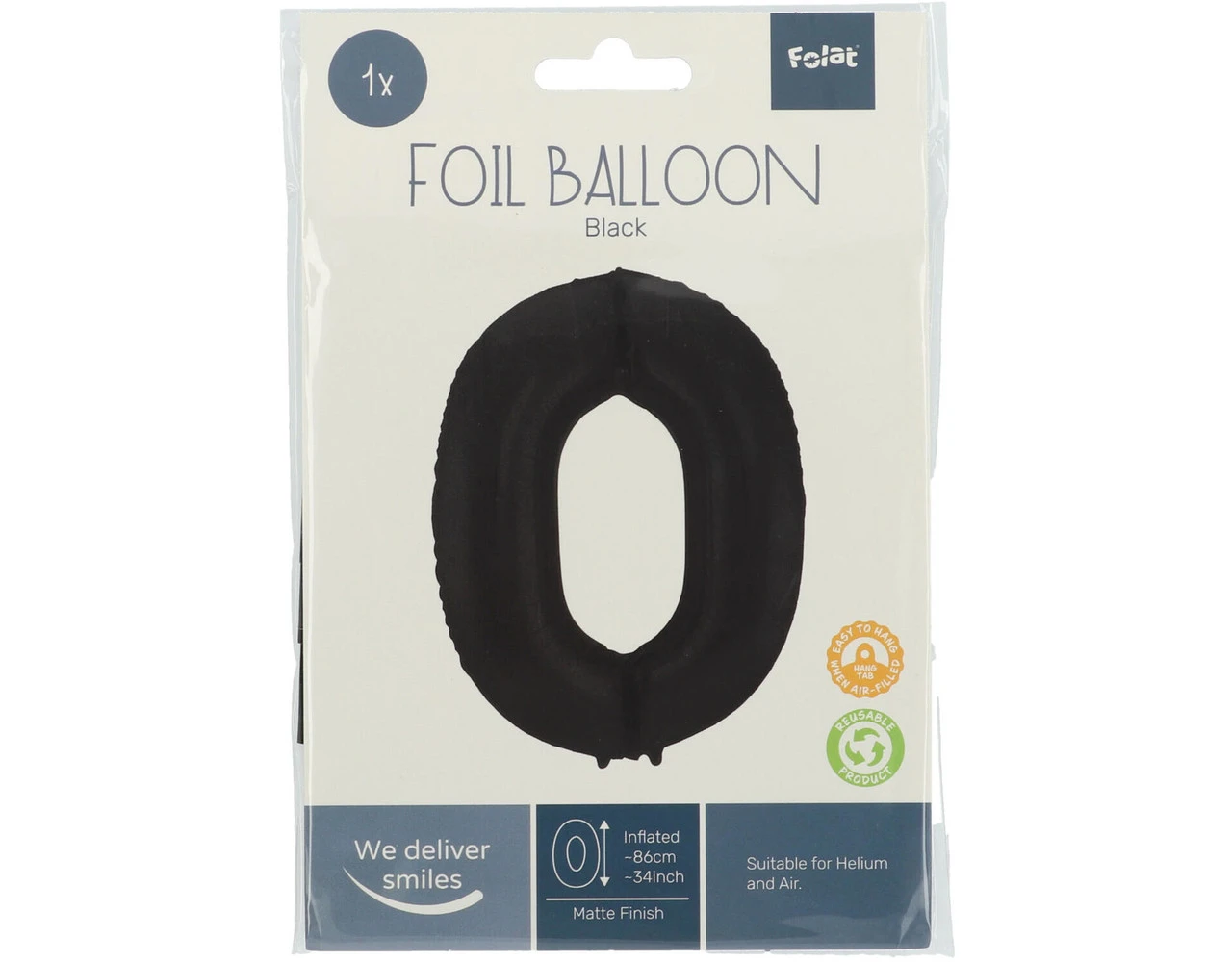 Folieballon Cijfer 0 Zwart Metallic Mat – 86 cm. Inhoud: 1 folieballon. Kleur: Zwart. Bijvoorbeeld te gebruiken tijdens de volgende feestgelegenheid/feestgelegenheden: Verjaardag, Kinderfeestje en Jubileum. Deze folieballon is 34 inch/86 cm. Het artikel is gemaakt van folie.