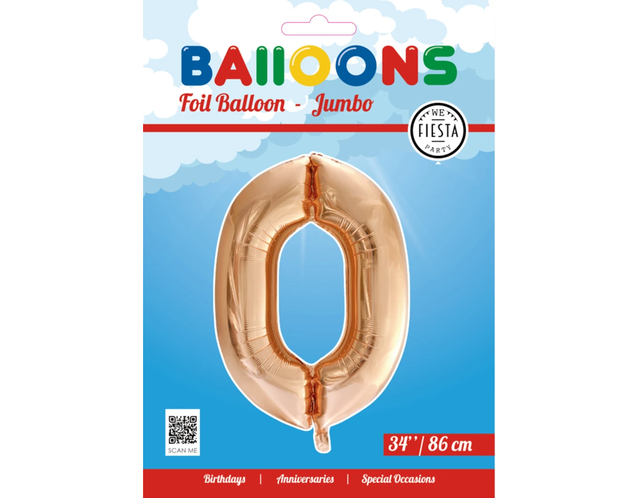Verpakkingsinhoud: Folie Ballon Cijfer 0 Rose Goud XL 86cm leeg