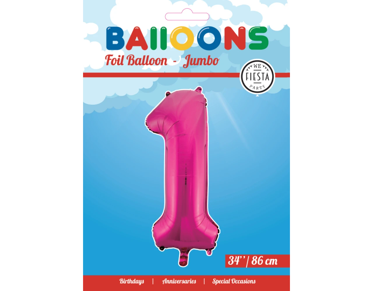 Verpakkingsinhoud: Folie Ballon Cijfer 1 Fuchsia XL 86cm leeg