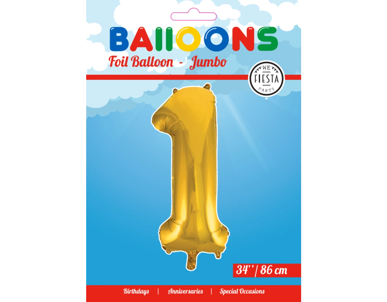 Verpakkingsinhoud: Folie Ballon Cijfer 1 Goud XL 86cm leeg