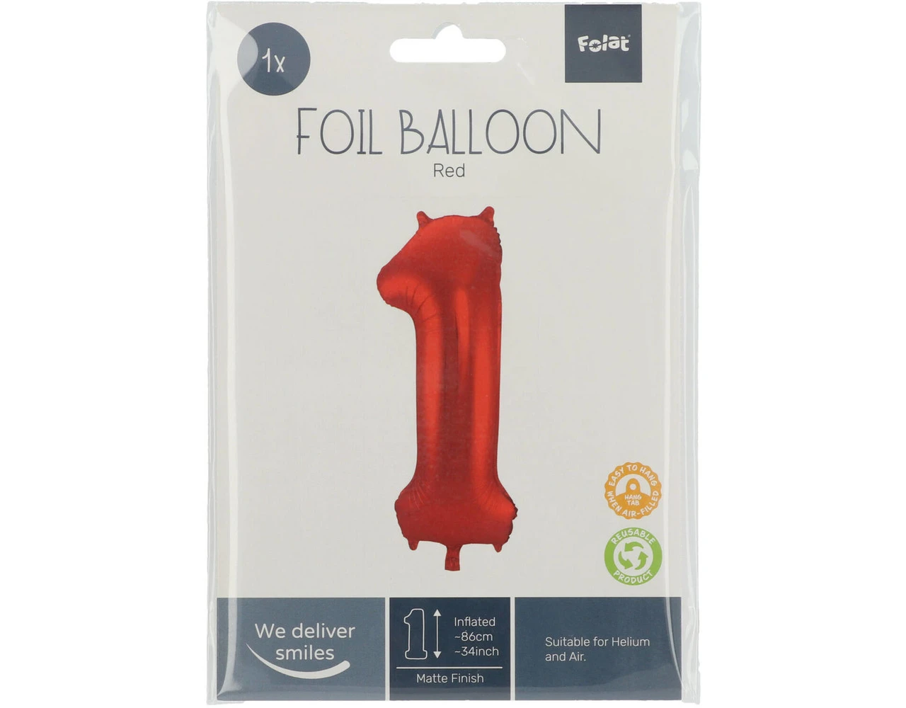 Folieballon Cijfer 1 Rood Metallic Mat – 86 cm. Inhoud: 1 folieballon. Kleur: Rood. Bijvoorbeeld te gebruiken tijdens de volgende feestgelegenheid/feestgelegenheden: Verjaardag, Kinderfeestje en Jubileum. Deze folieballon is 34 inch/86 cm. Het artikel is gemaakt van folie.