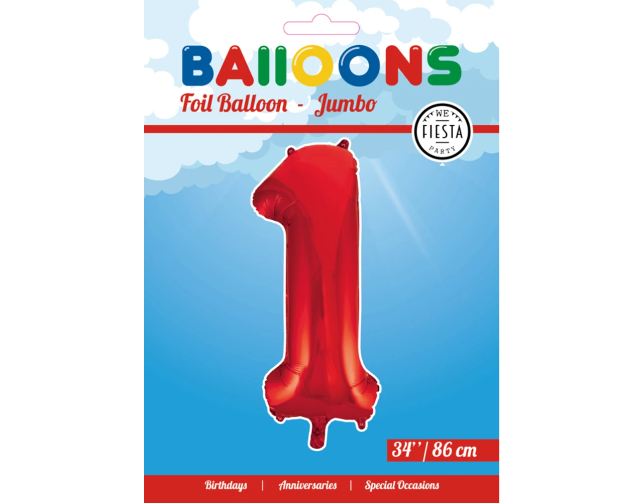 Verpakkingsinhoud: Folie Ballon Cijfer 1 Rood XL 86cm leeg