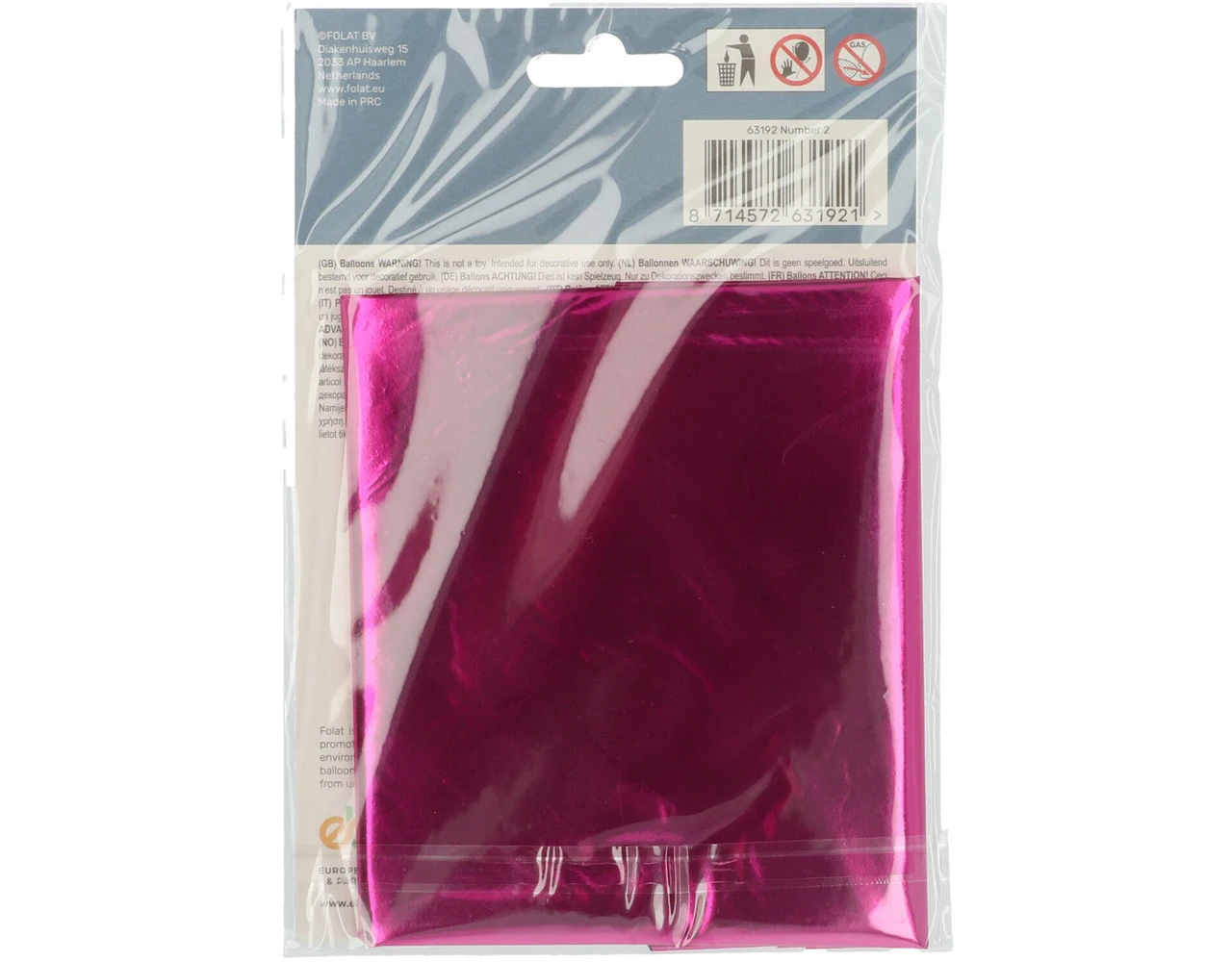 Magenta Cijferballon Cijfer 2 – 86 cm. Inhoud: 1 folieballon. Kleur: Magenta. Bijvoorbeeld te gebruiken tijdens de volgende feestgelegenheid/feestgelegenheden: Verjaardag, Jubileum en Kinderfeestje. Deze folieballon is 34 inch/86 cm. Het artikel is gemaakt van folie.