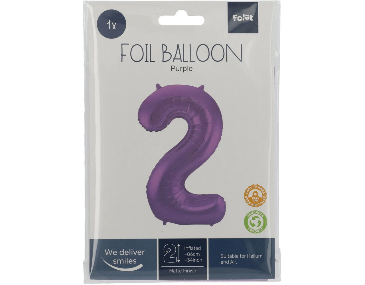 Folieballon Cijfer 2 Paars Metallic Mat – 86 cm. Inhoud: 1 folieballon. Kleur: Paars. Bijvoorbeeld te gebruiken tijdens de volgende feestgelegenheid/feestgelegenheden: Verjaardag, Kinderfeestje en Jubileum. Deze folieballon is 34 inch/86 cm. Het artikel is gemaakt van folie.