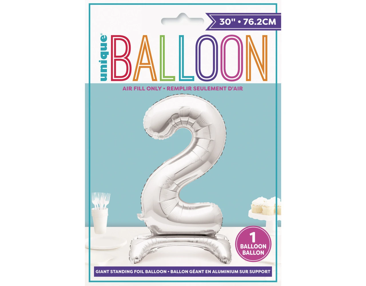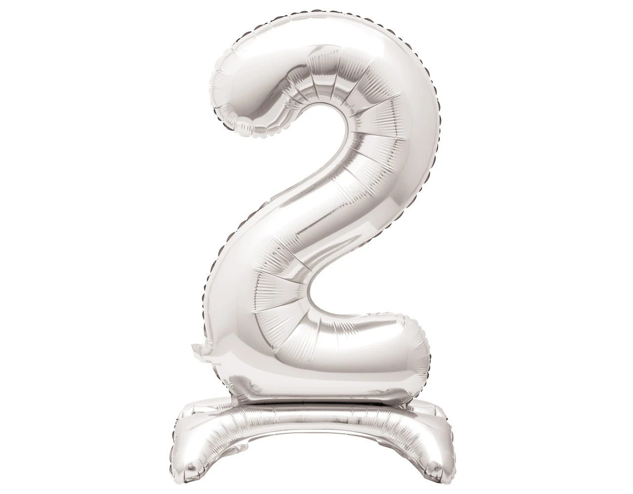 Verpakkingsinhoud: Folie Ballon Cijfer 2 Zilver met standaard 76cm
