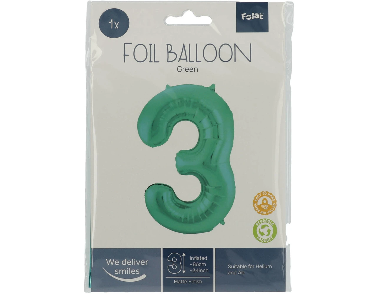 Mooie grote folieballon van het cijfer 3 in een metallic mat groene kleur. Inhoud: 1 folieballon van 86cm. Kleur: Groen. De ballon komt met handige ophang tabs, zodat hij makkelijk opgehangen kan worden. Bijvoorbeeld te gebruiken tijdens de volgende feestgelegenheid/feestgelegenheden: Verjaardag, Kinderfeestje en Jubileum. Deze folieballon is 34 inch/86 cm. Het artikel is gemaakt van folie.