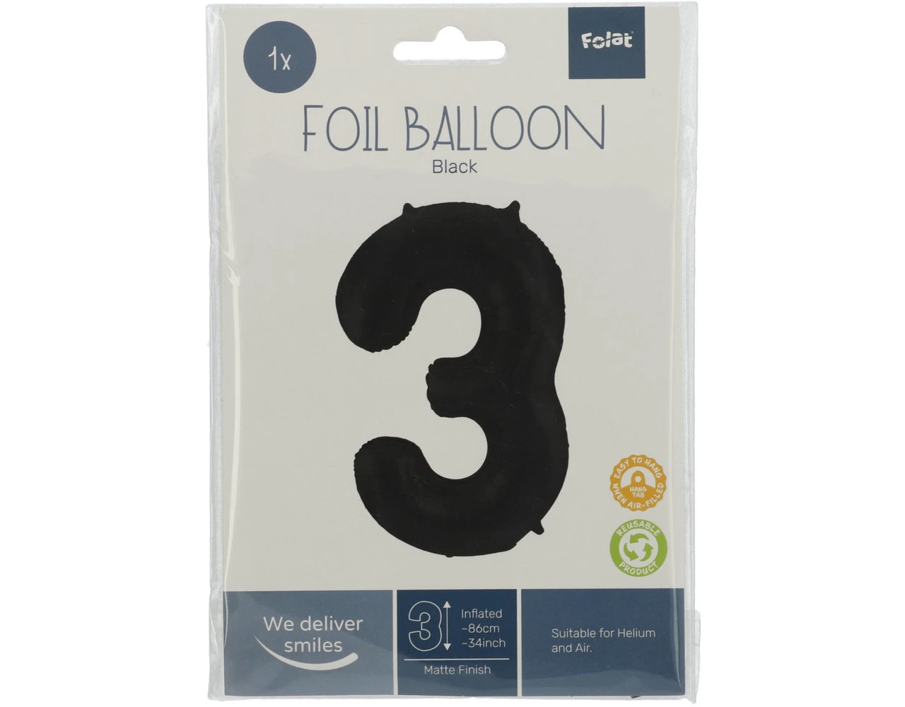 Folieballon Cijfer 3 Zwart Metallic Mat – 86 cm. Inhoud: 1 folieballon. Kleur: Zwart. Bijvoorbeeld te gebruiken tijdens de volgende feestgelegenheid/feestgelegenheden: Verjaardag, Kinderfeestje en Jubileum. Deze folieballon is 34 inch/86 cm. Het artikel is gemaakt van folie.