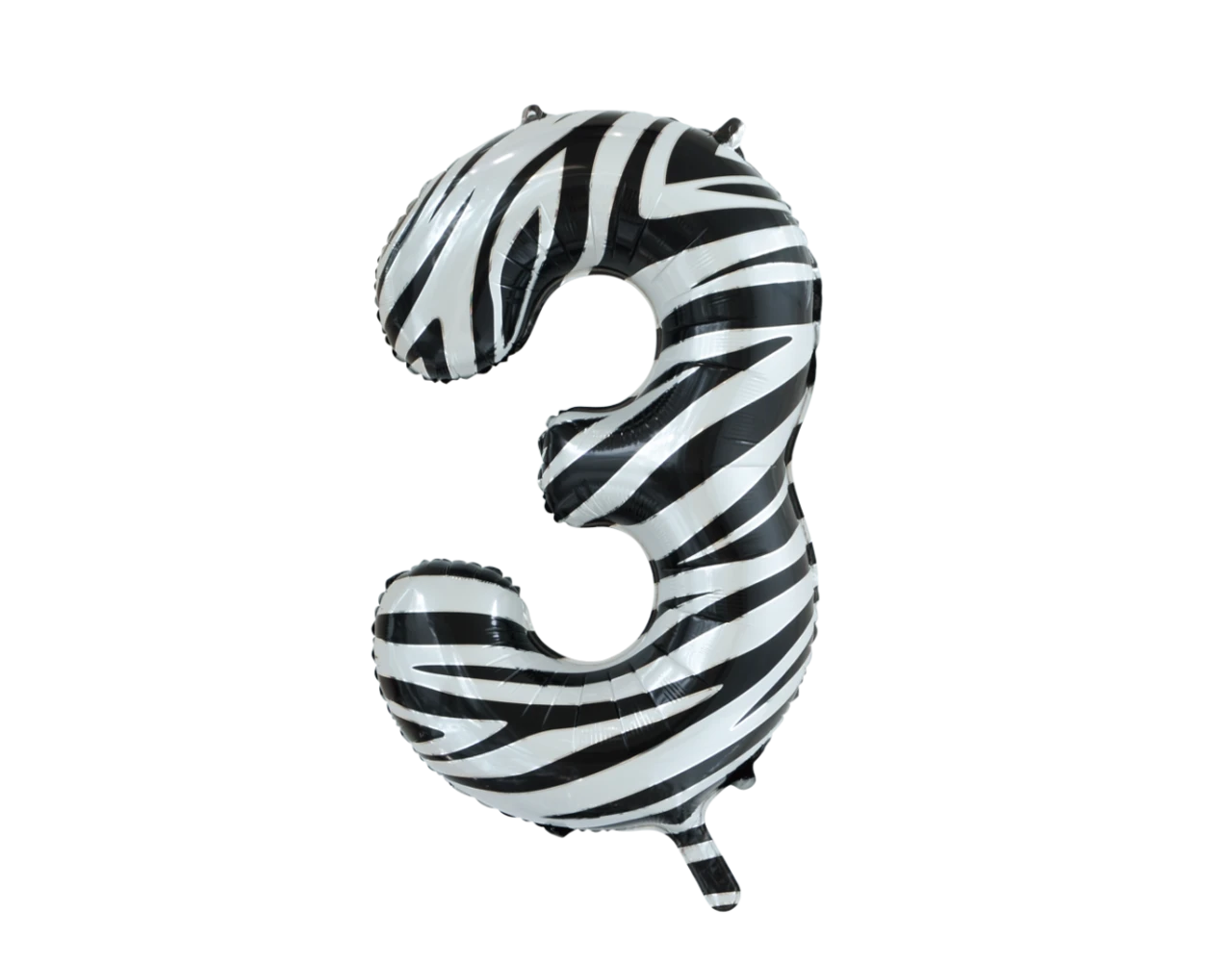 Verpakkingsinhoud: Folie Ballon Cijfer 3 Zebra XL 86cm leeg
