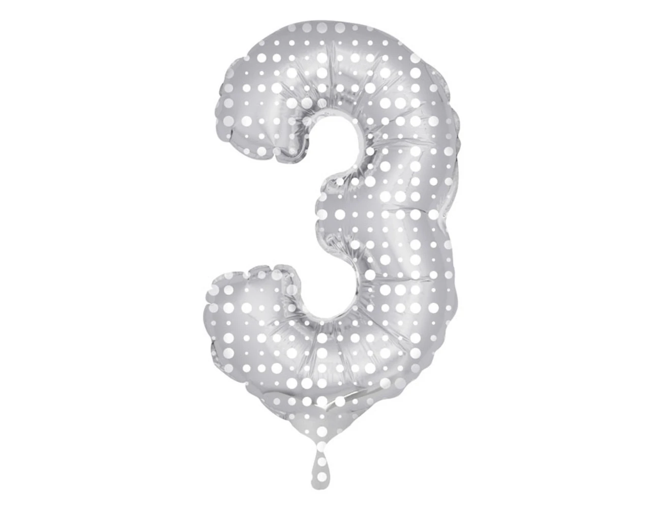 Cijfer Ballon Nummer 3 met Stippen – 86cm. Inhoud: 1 folieballon. Kleur: Zilverkleurig. Bijvoorbeeld te gebruiken tijdens de volgende feestgelegenheid/feestgelegenheden: Verjaardag, Jubileum en Kinderfeestje. Deze folieballon is 34 inch/86 cm. Het artikel is gemaakt van folie.