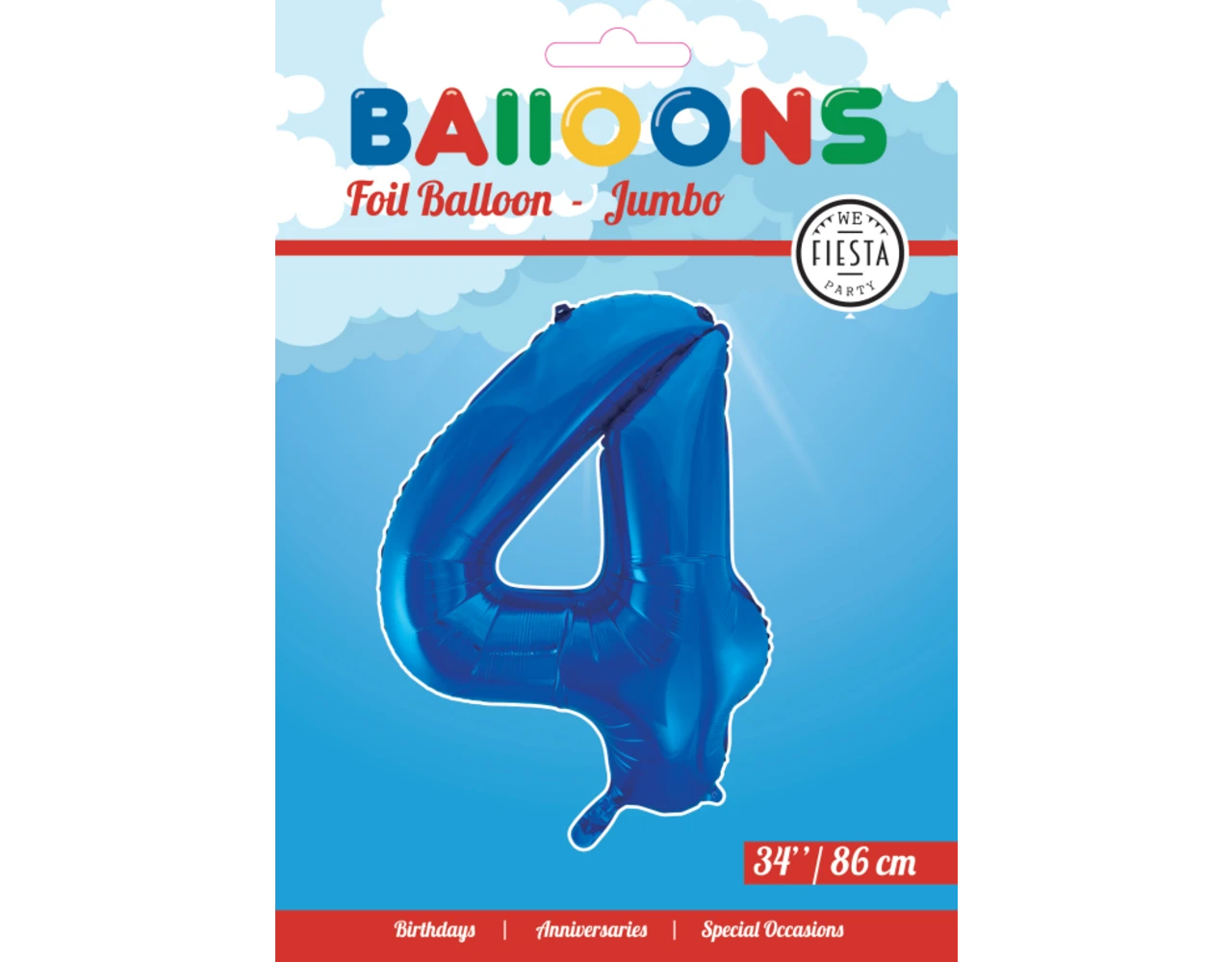 Verpakkingsinhoud: Folie Ballon Cijfer 4 Blauw XL 86cm leeg