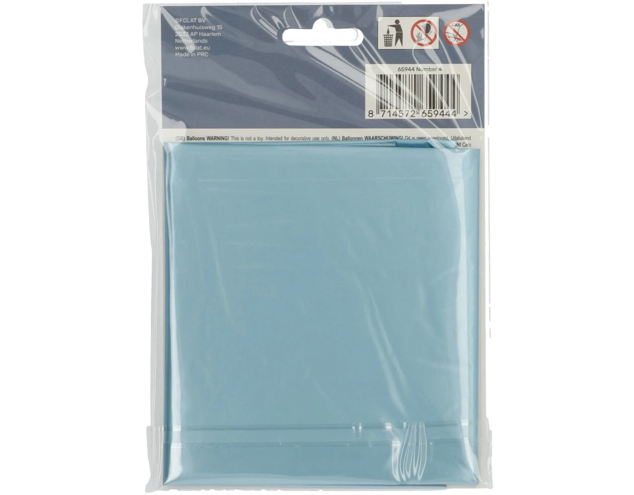 Folieballon Cijfer 4 Pastel Blauw Metallic Mat – 86 cm. Inhoud: 1 folieballon. Kleur: Blauw. Bijvoorbeeld te gebruiken tijdens de volgende feestgelegenheid/feestgelegenheden: Verjaardag, Kinderfeestje en Jubileum. Deze folieballon is 34 inch/86 cm. Het artikel is gemaakt van folie.