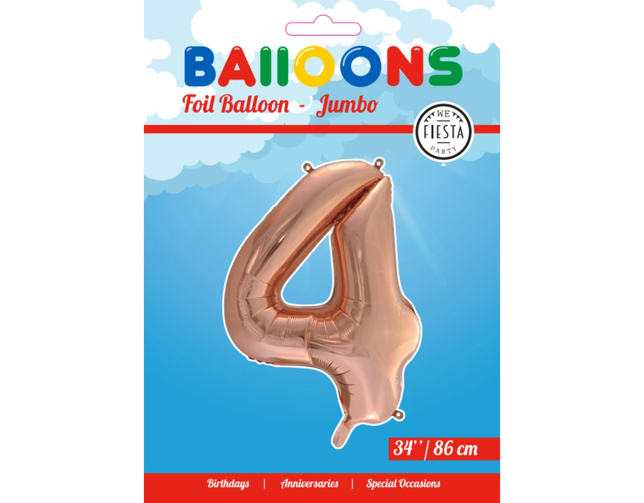Verpakkingsinhoud: Folie Ballon Cijfer 4 Rose Goud XL 86cm leeg