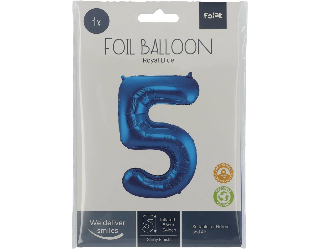 Blauwe Folieballon Cijfer 5 – 86cm. Inhoud: 1 folieballon. Kleur: Blauw. Bijvoorbeeld te gebruiken tijdens de volgende feestgelegenheid/feestgelegenheden: Verjaardag, Jubileum en Kinderfeestje. Deze folieballon is 34 inch/86 cm. Het artikel is gemaakt van folie.