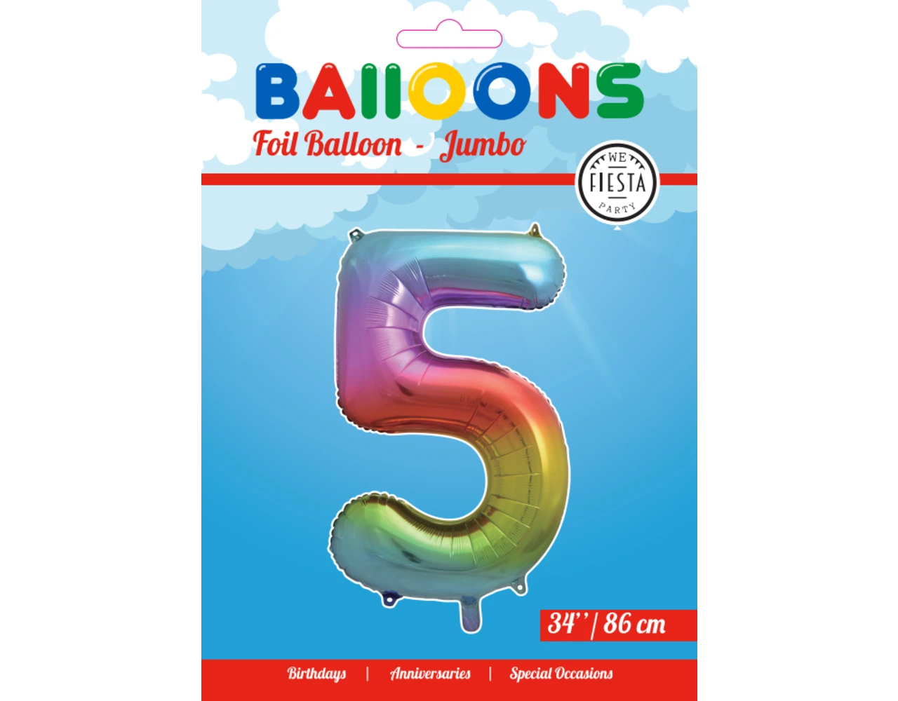 Verpakkingsinhoud: Folie Ballon Cijfer 5 Regenboog XL 86cm leeg