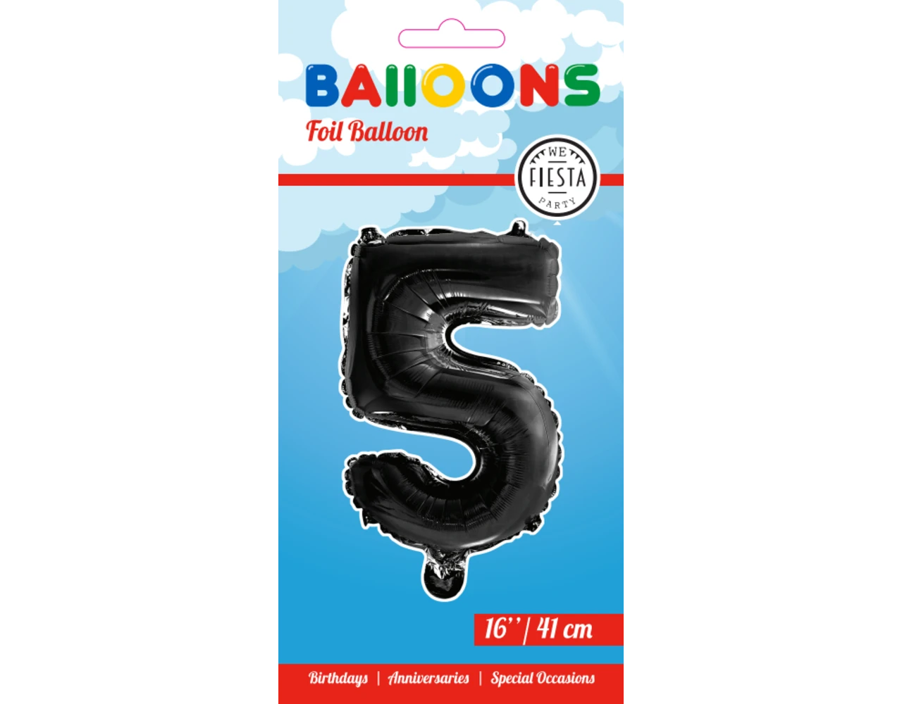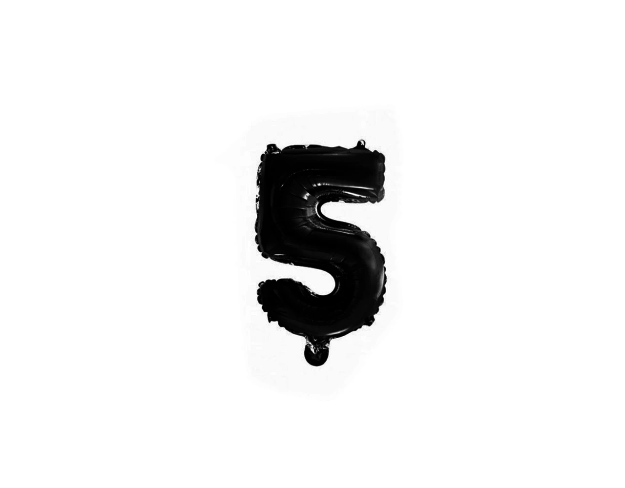 Verpakkingsinhoud: Folie Ballon Cijfer 5 Zwart 41cm met Rietje