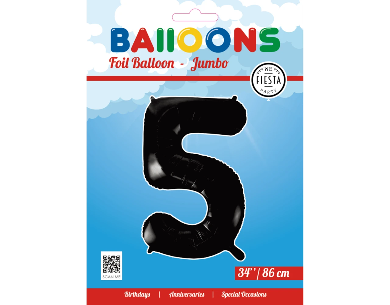 Verpakkingsinhoud: Folie Ballon Cijfer 5 Zwart XL 86cm leeg