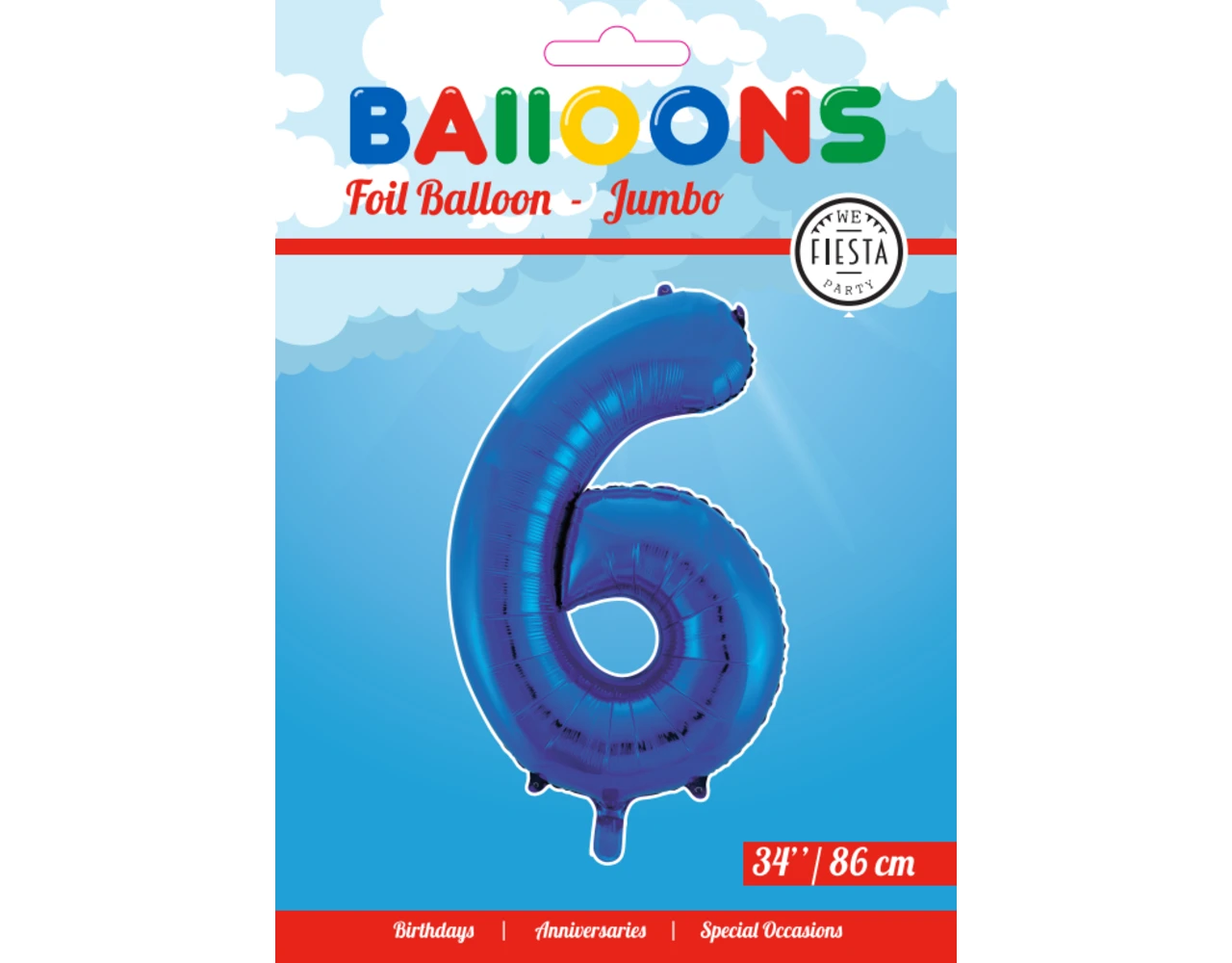 Verpakkingsinhoud: Folie Ballon Cijfer 6 Blauw XL 86cm leeg