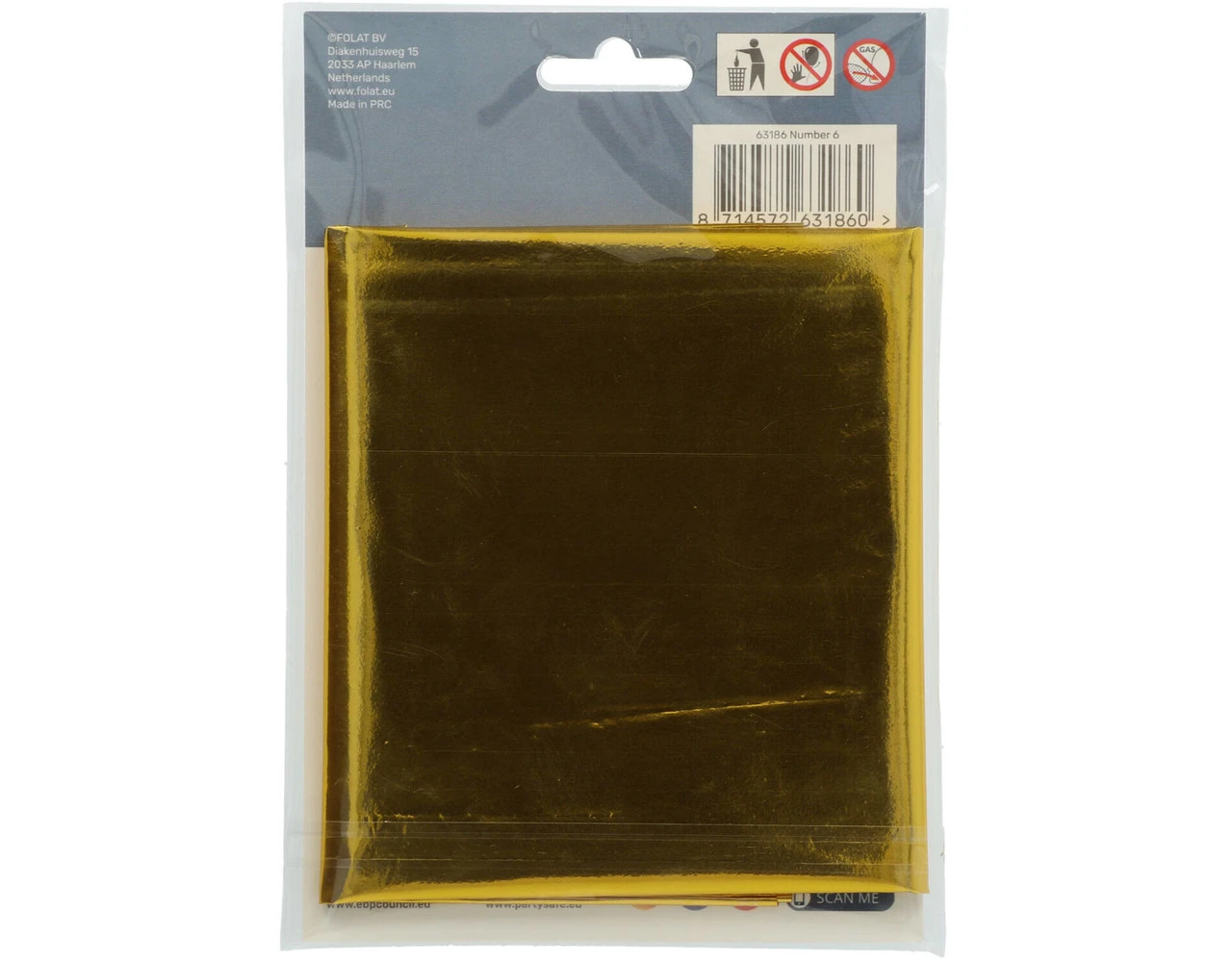 Gouden Folieballon Cijfer 6 – 86 cm. Inhoud: 1 folieballon. Kleur: Goudkleurig. Bijvoorbeeld te gebruiken tijdens de volgende feestgelegenheid/feestgelegenheden: Verjaardag, Jubileum en Kinderfeestje. Deze folieballon is 34 inch/86 cm. Het artikel is gemaakt van folie.