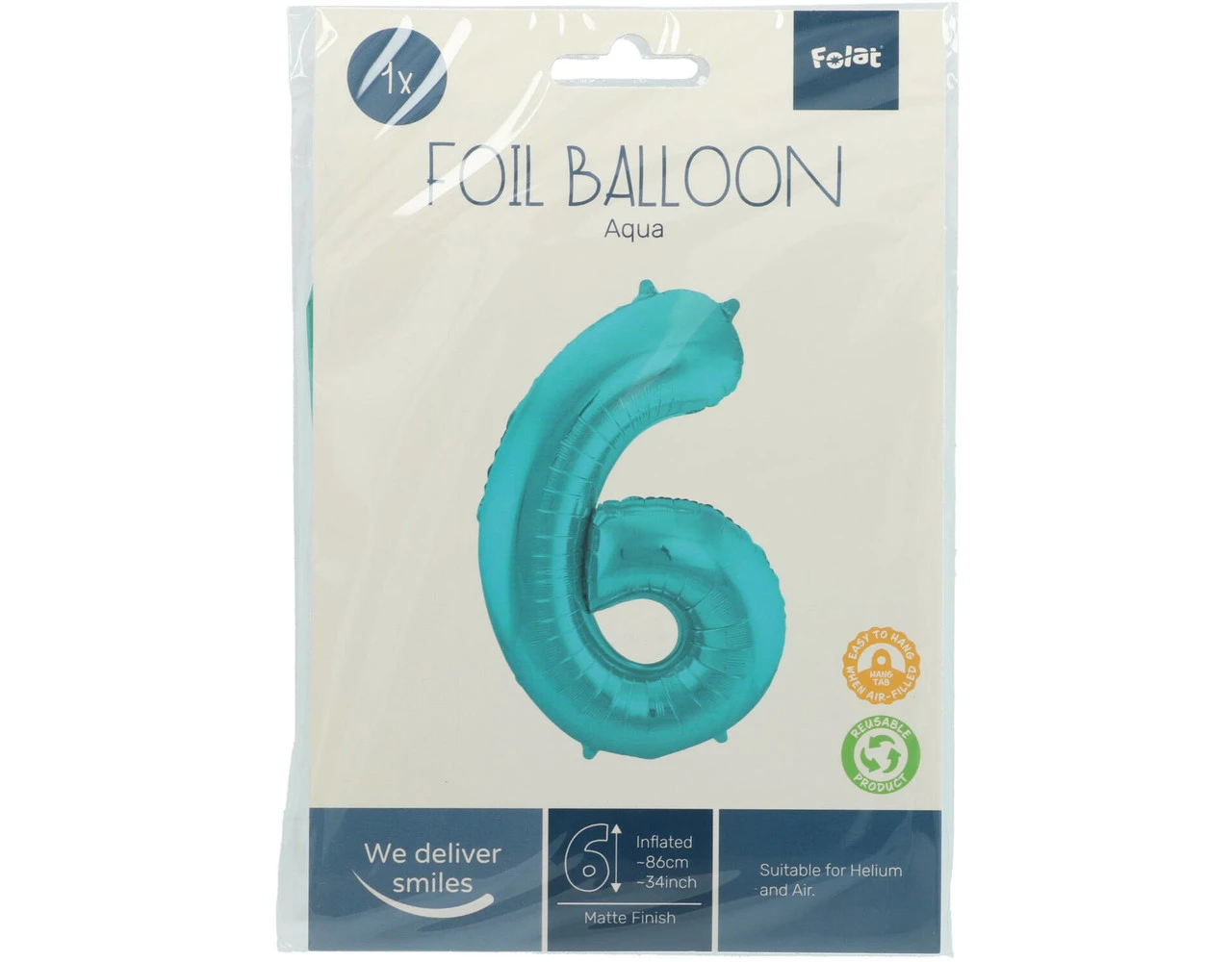 Folieballon Cijfer 6 Pastel Aqua Metallic Mat – 86 cm. Inhoud: 1 folieballon. Kleur: Blauw. Bijvoorbeeld te gebruiken tijdens de volgende feestgelegenheid/feestgelegenheden: Verjaardag, Kinderfeestje en Jubileum. Deze folieballon is 34 inch/86 cm. Het artikel is gemaakt van folie.
