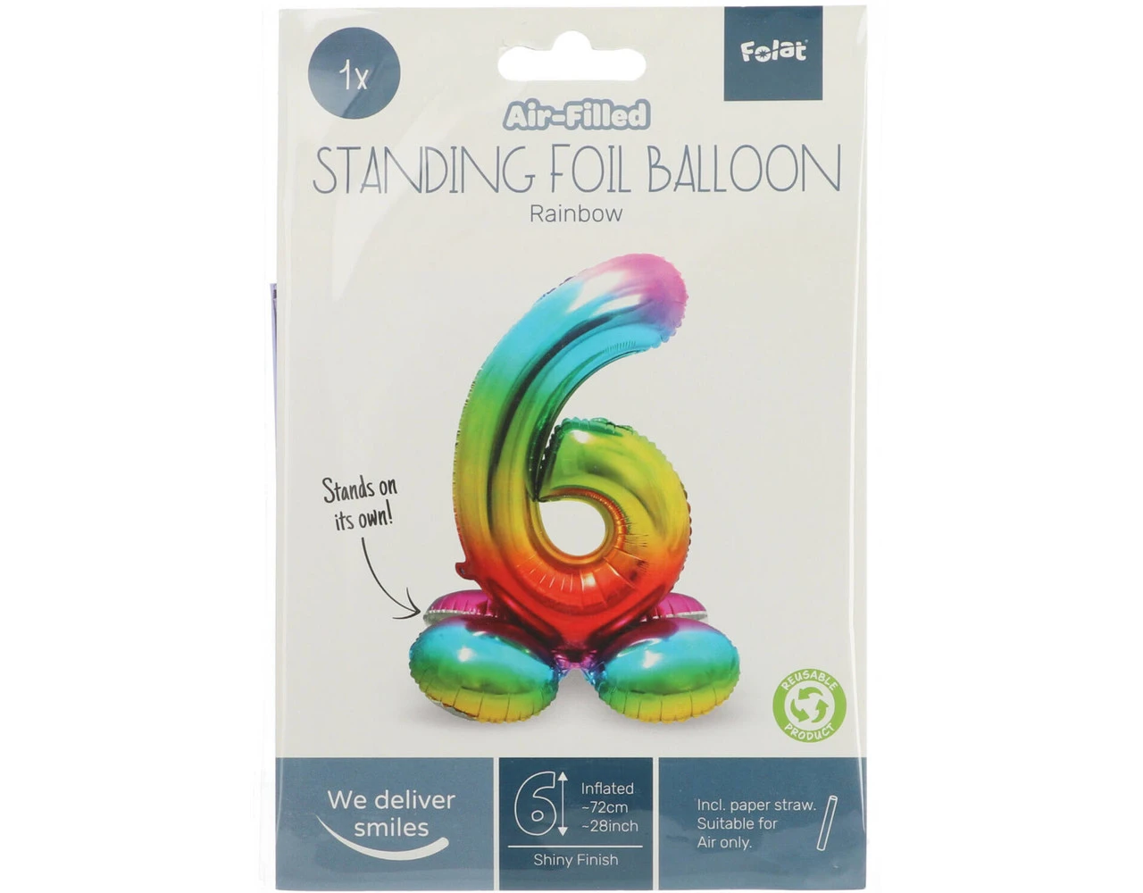 Staande Folieballon Cijfer 6 Regenboog – 72 cm. Inhoud: 1 folieballon. Kleur: Meerkleurig. Bijvoorbeeld te gebruiken tijdens de volgende feestgelegenheid/feestgelegenheden: Verjaardag, Kinderfeestje en Jubileum. Deze folieballon is 32 inch/81 cm en kan gevuld worden met lucht (geen helium nodig). Het artikel is gemaakt van folie.