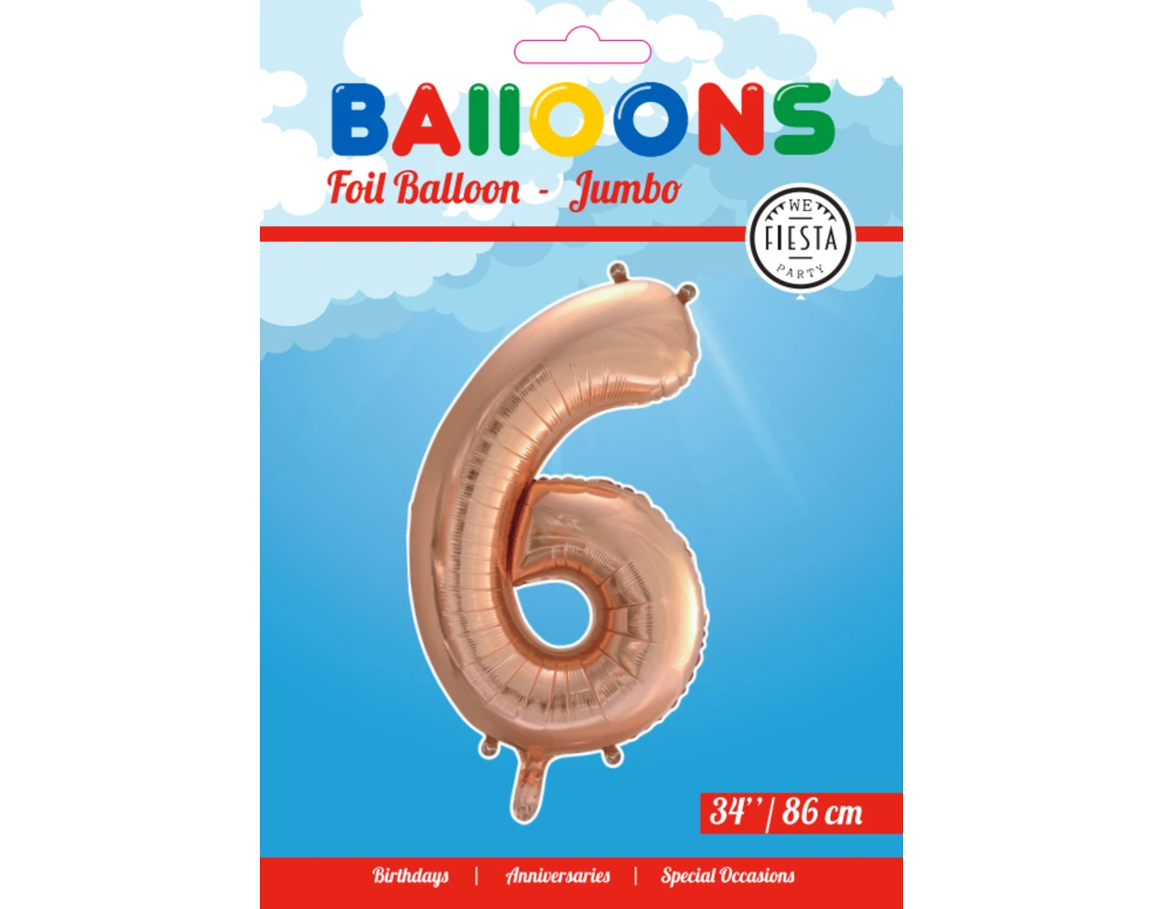 Verpakkingsinhoud: Folie Ballon Cijfer 6 Rose Goud XL 86cm leeg