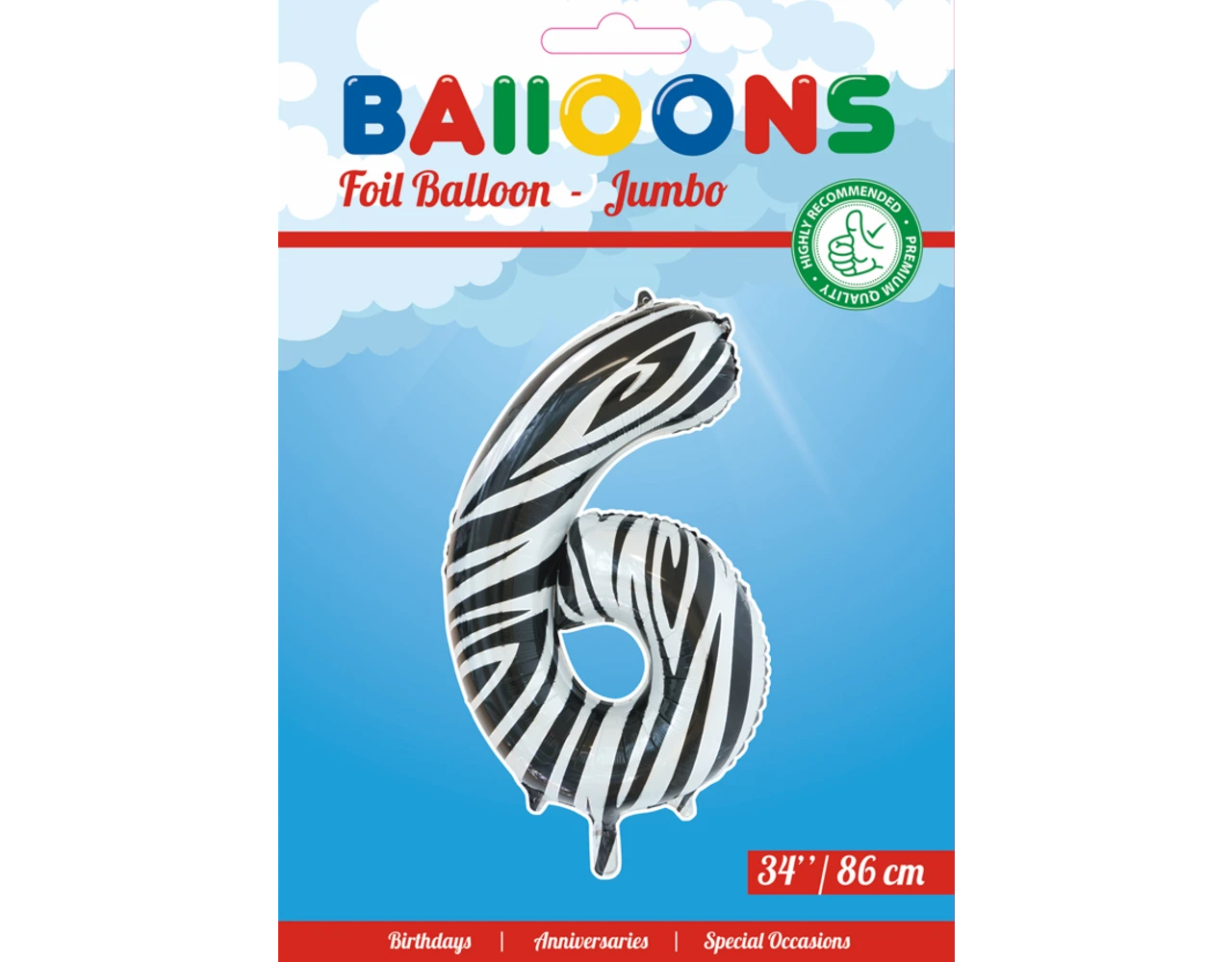 Verpakkingsinhoud: Folie Ballon Cijfer 6 Zebra XL 86cm leeg