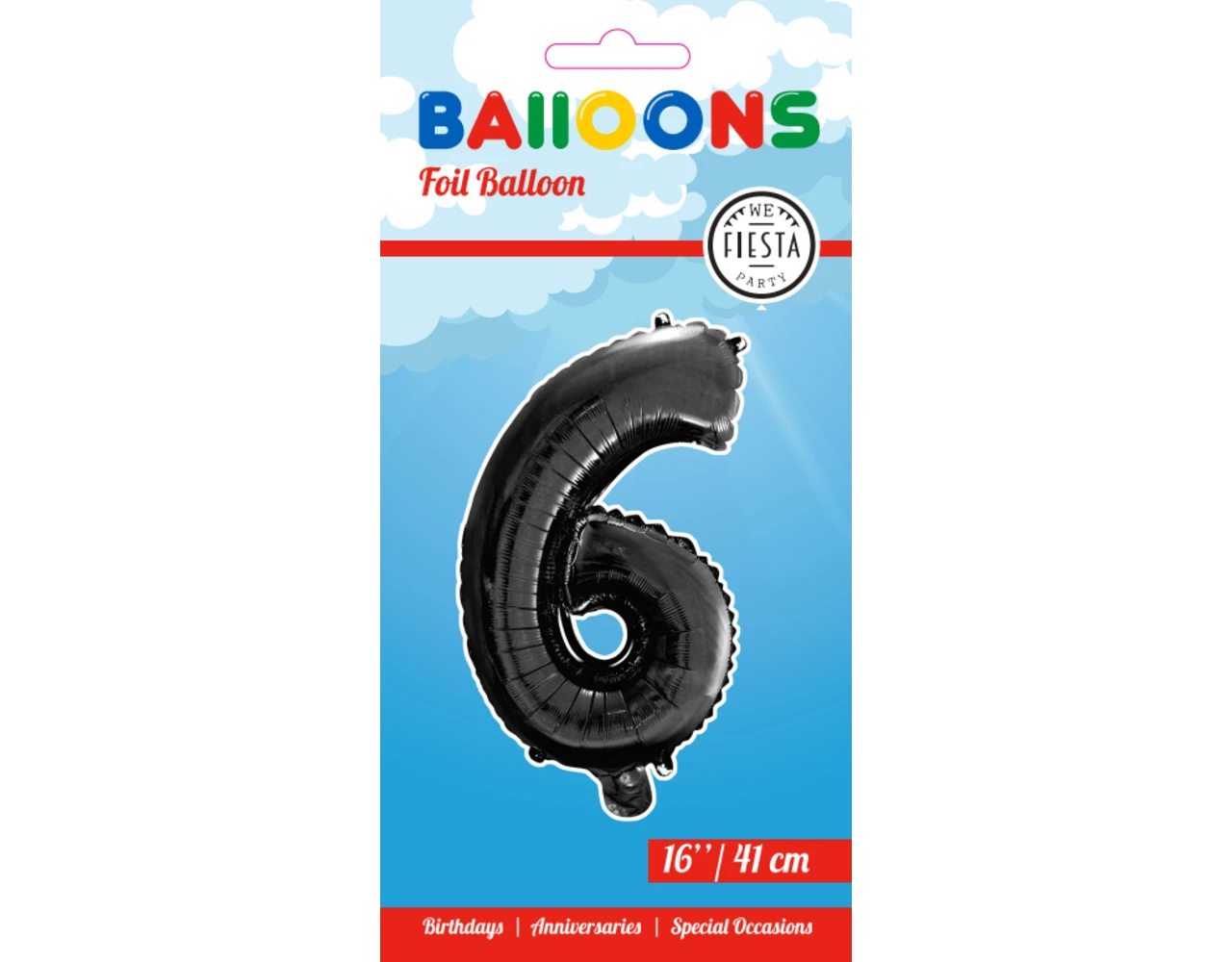 Verpakkingsinhoud: Folie Ballon Cijfer 6 Zwart 41cm met Rietje