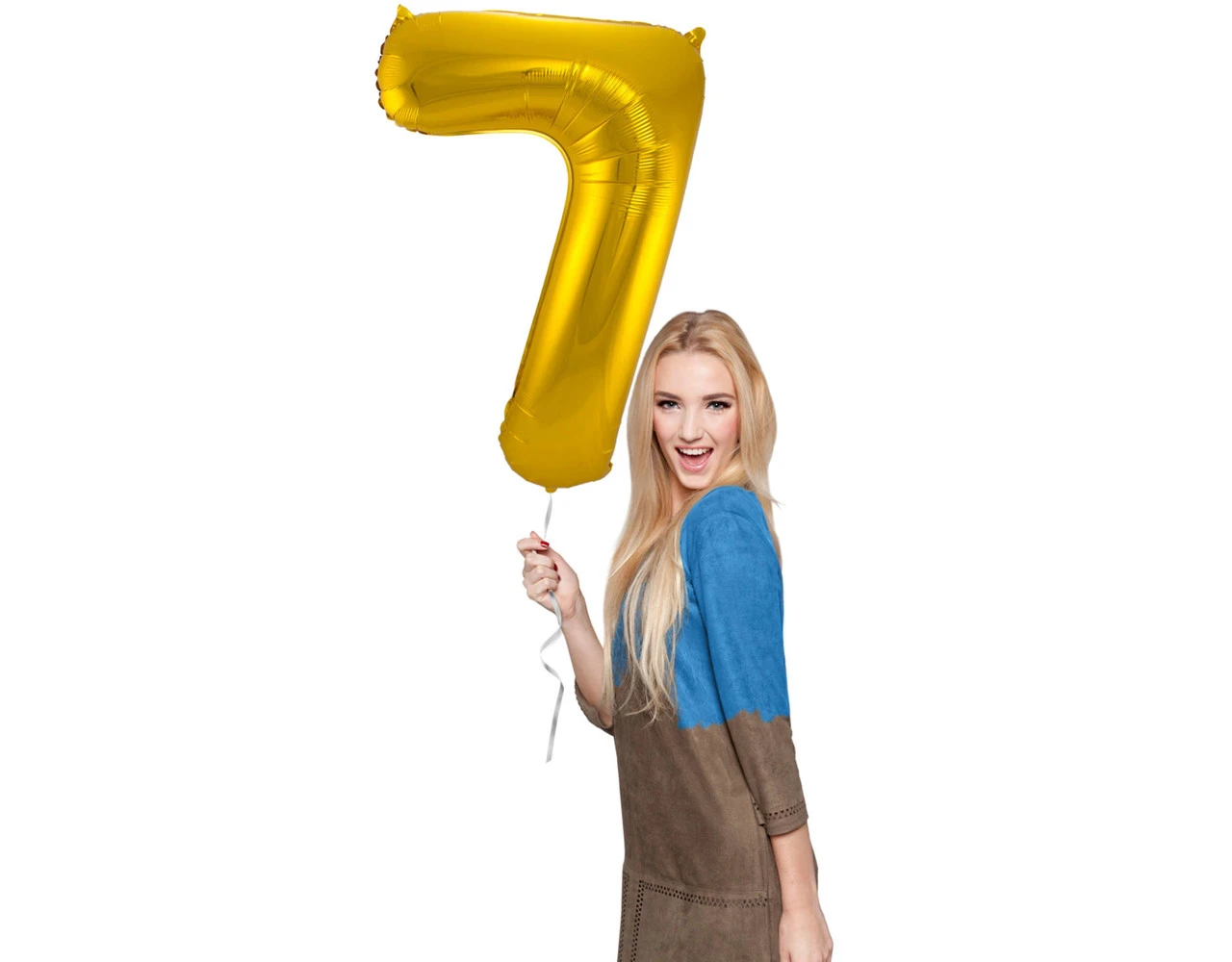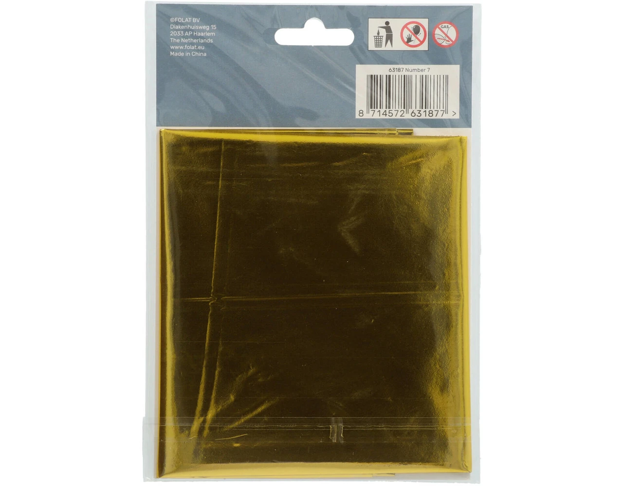 Gouden Folieballon Cijfer 7 – 86 cm. Inhoud: 1 folieballon. Kleur: Goudkleurig. Bijvoorbeeld te gebruiken tijdens de volgende feestgelegenheid/feestgelegenheden: Verjaardag, Jubileum en Kinderfeestje. Deze folieballon is 34 inch/86 cm. Het artikel is gemaakt van folie.