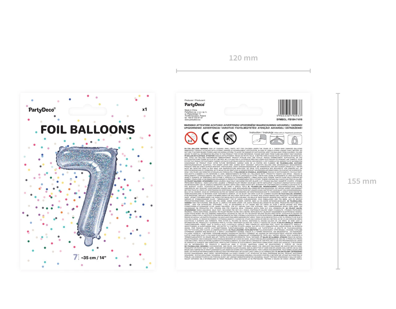 Verpakkingsinhoud: Folie Ballon Cijfer 7 Holografisch 35cm