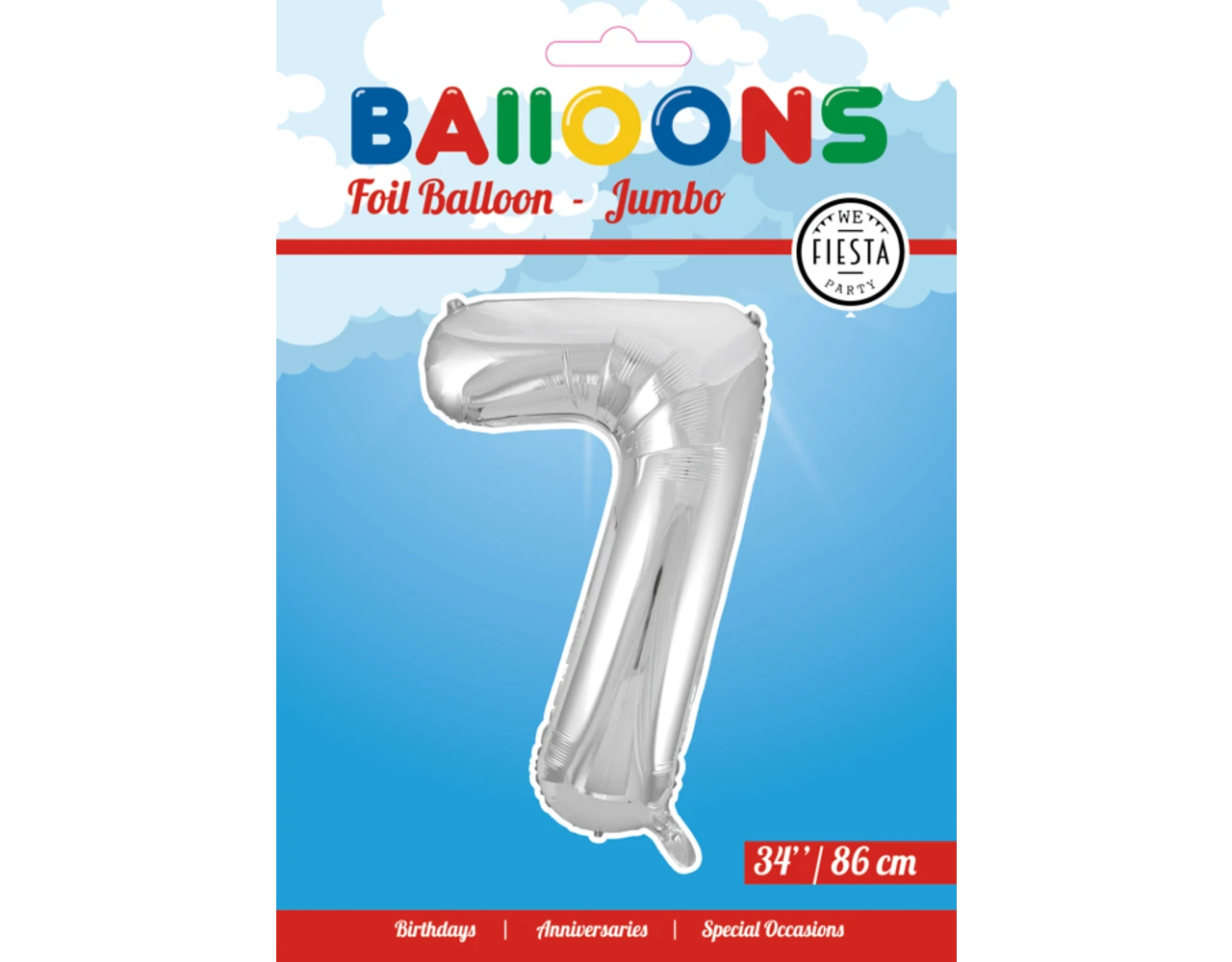 Verpakkingsinhoud: Folie Ballon Cijfer 7 Zilver XL 86cm leeg