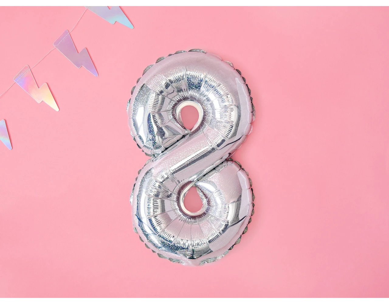 Verpakkingsinhoud: Folie Ballon Cijfer 8 Holografisch 35cm