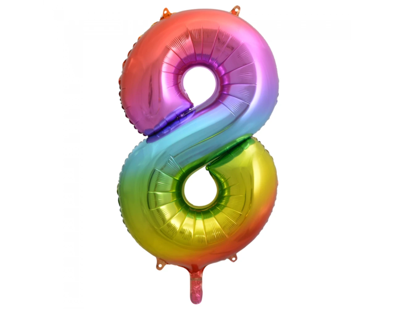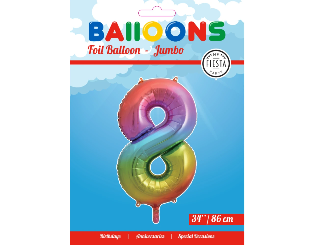 Verpakkingsinhoud: Folie Ballon Cijfer 8 Regenboog XL 86cm leeg