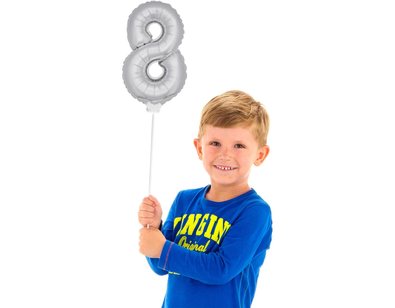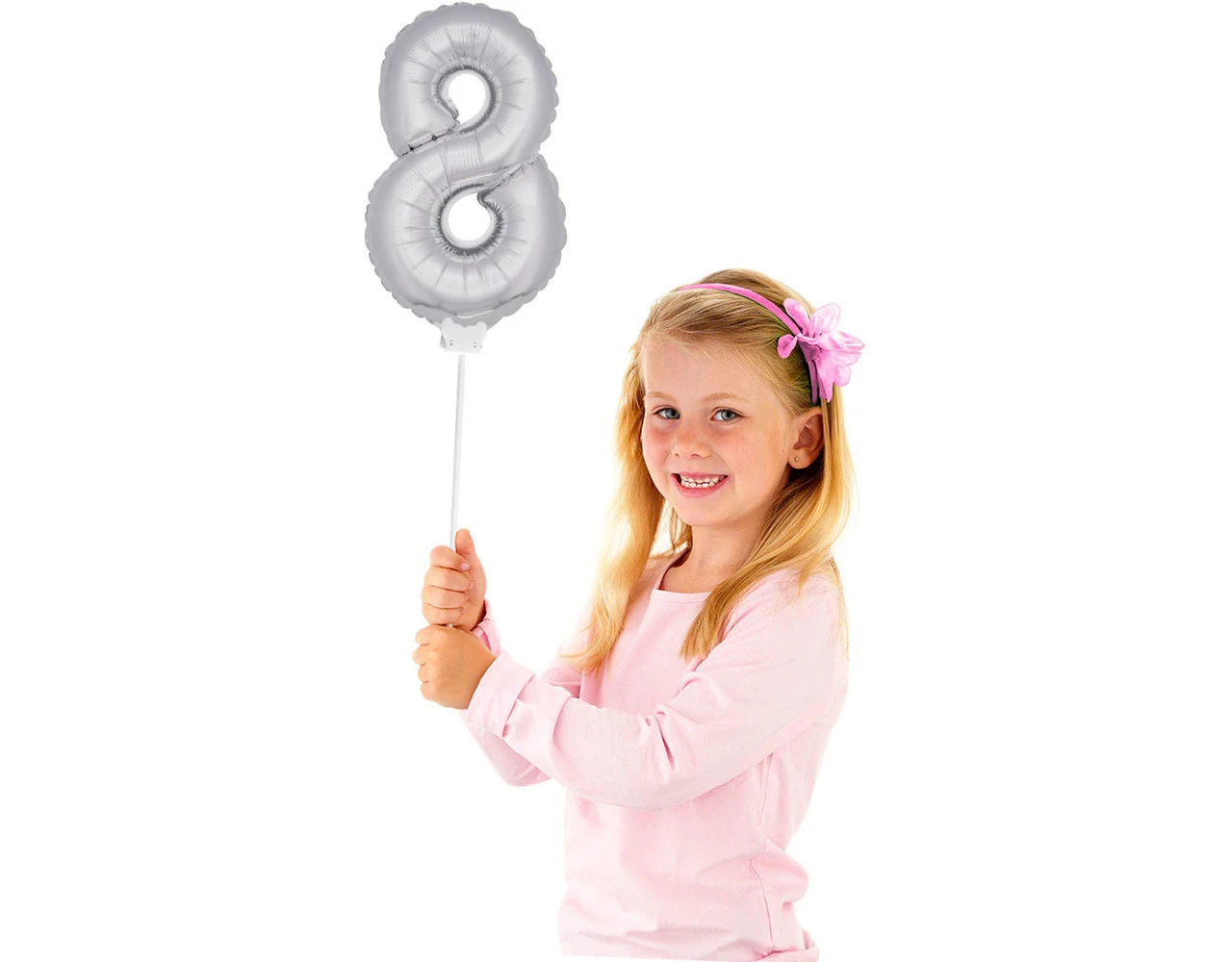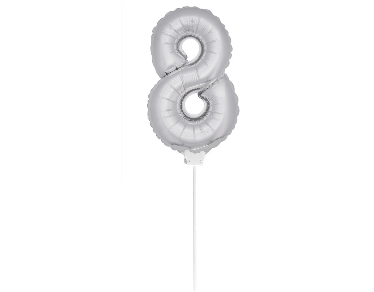 Mini Figuurballon Zilver Cijfer 8 – 36cm. Inhoud: 1 folieballon. Kleur: Zilverkleurig. Bijvoorbeeld te gebruiken tijdens de volgende feestgelegenheid/feestgelegenheden: Verjaardag, Jubileum en Kinderfeestje. Deze folieballon is 14 inch/36 cm. Het artikel is gemaakt van folie.