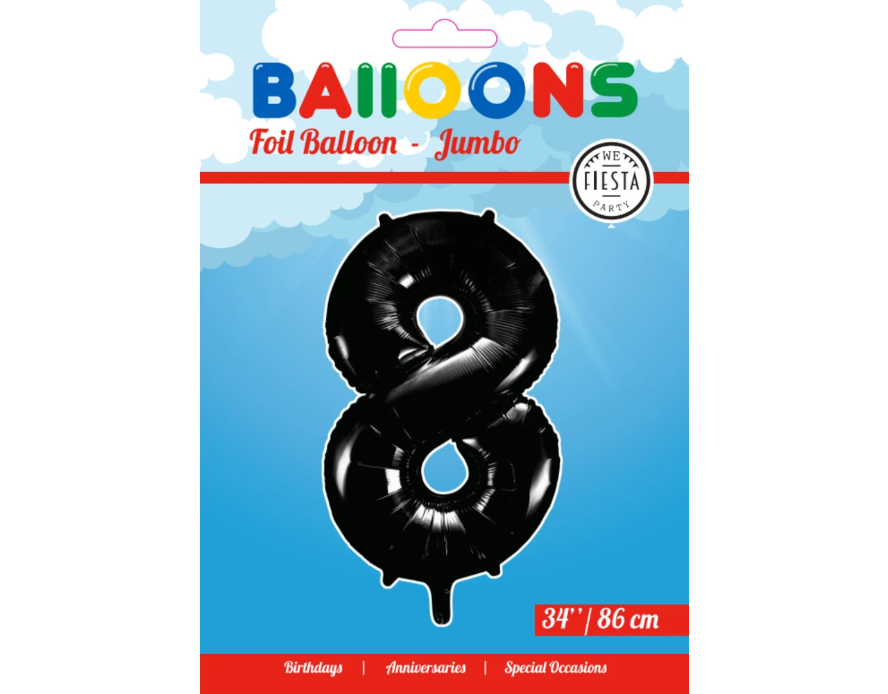 Verpakkingsinhoud: Folie Ballon Cijfer 8 Zwart XL 86cm leeg
