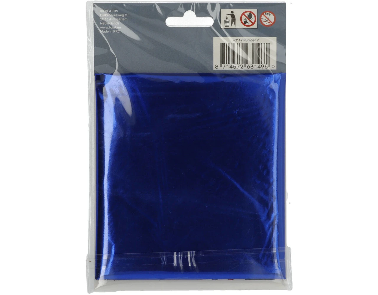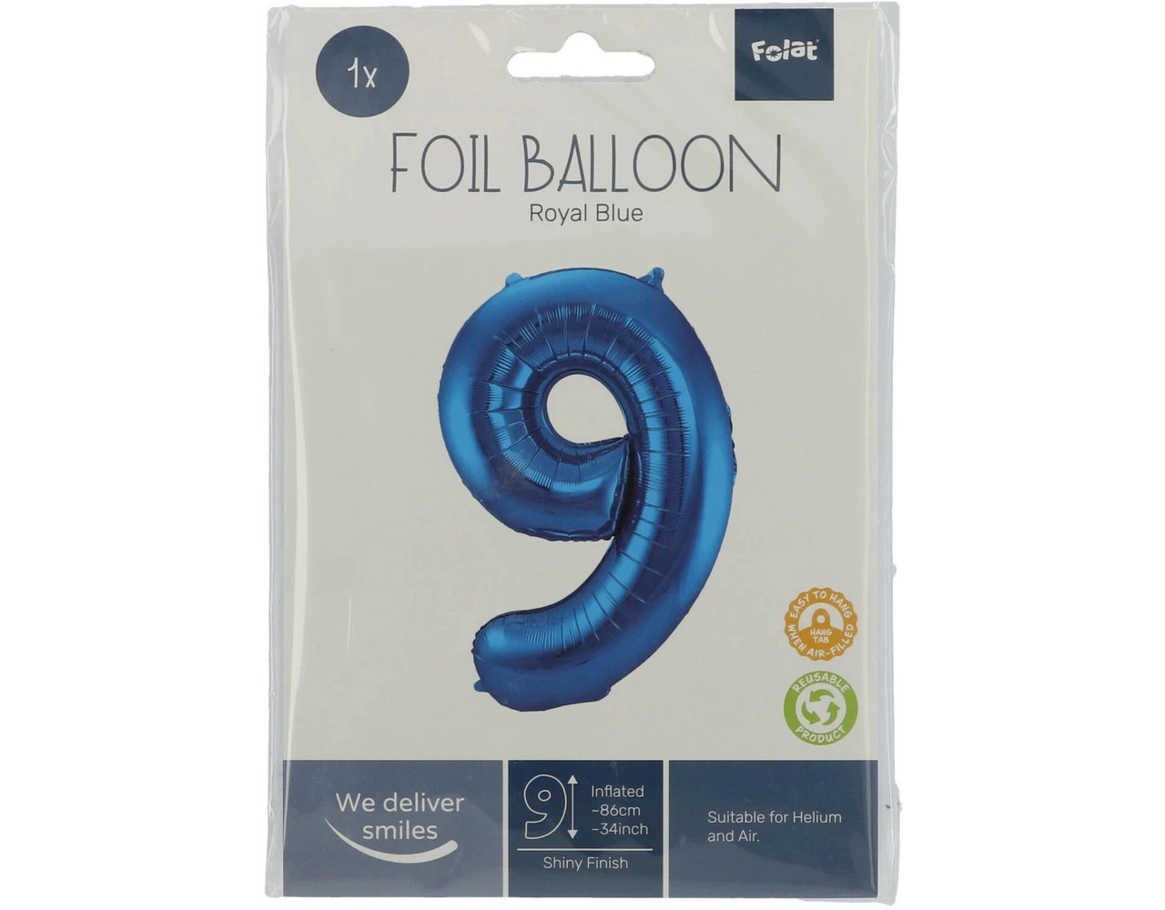 Blauwe Folieballon Cijfer 9 – 86cm. Inhoud: 1 folieballon. Kleur: Blauw. Bijvoorbeeld te gebruiken tijdens de volgende feestgelegenheid/feestgelegenheden: Verjaardag, Jubileum en Kinderfeestje. Deze folieballon is 34 inch/86 cm. Het artikel is gemaakt van folie.