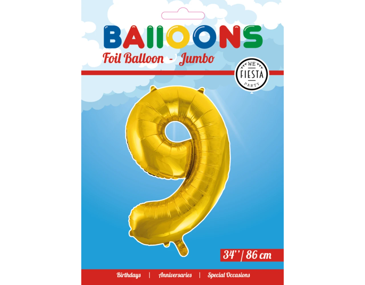 Verpakkingsinhoud: Folie Ballon Cijfer 9 Goud XL 86cm leeg