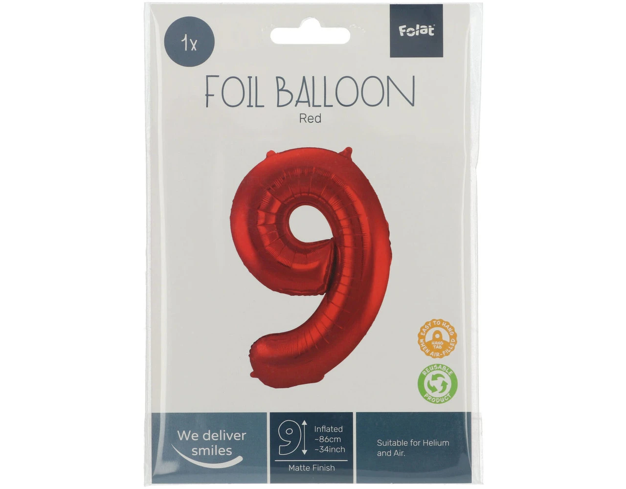 Folieballon Cijfer 9 Rood Metallic Mat – 86 cm. Inhoud: 1 folieballon. Kleur: Rood. Bijvoorbeeld te gebruiken tijdens de volgende feestgelegenheid/feestgelegenheden: Verjaardag, Kinderfeestje en Jubileum. Deze folieballon is 34 inch/86 cm. Het artikel is gemaakt van folie.