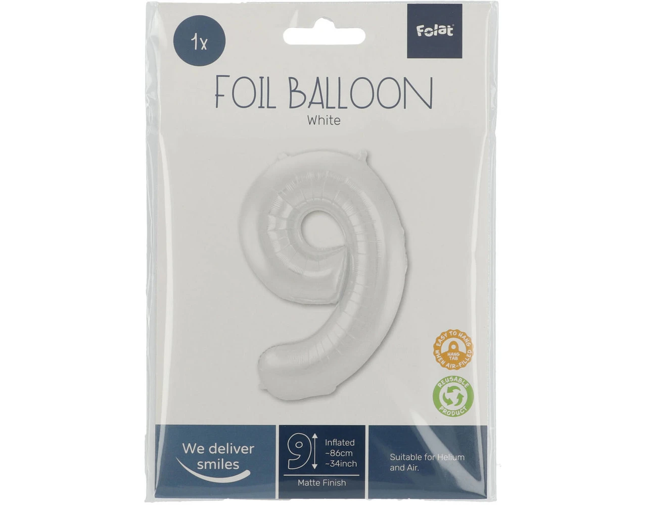 Folieballon Cijfer 9 Wit Metallic Mat – 86 cm. Inhoud: 1 folieballon. Kleur: Wit. Bijvoorbeeld te gebruiken tijdens de volgende feestgelegenheid/feestgelegenheden: Verjaardag, Kinderfeestje en Jubileum. Deze folieballon is 34 inch/86 cm. Het artikel is gemaakt van folie.