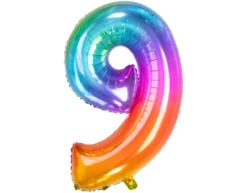 Folieballon Yummy Gummy Rainbow Cijfer 9 – 81 cm. Inhoud: 1 folieballon. Kleur: Meerkleurig. De voorkant is transparant en de achterkant is zilverkleurig. Bijvoorbeeld te gebruiken tijdens de volgende feestgelegenheid/feestgelegenheden: Verjaardag, Kinderfeestje en Jubileum. Deze folieballon is 32 inch/81 cm. Het artikel is gemaakt van folie.
