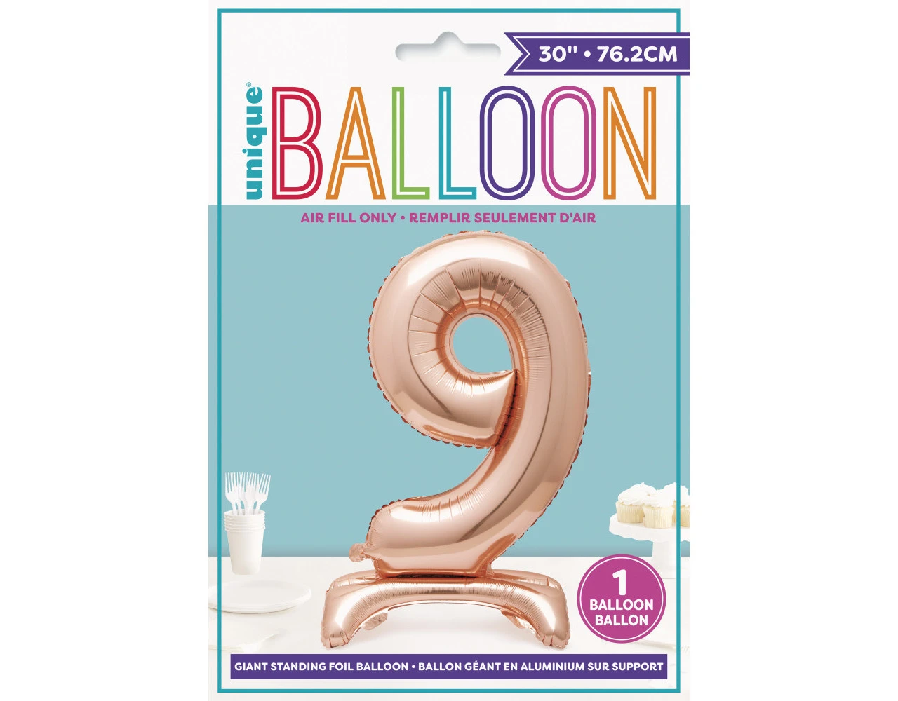 Verpakkingsinhoud: Folie Ballon Cijfer 9 Rosé Goud met standaard 76cm