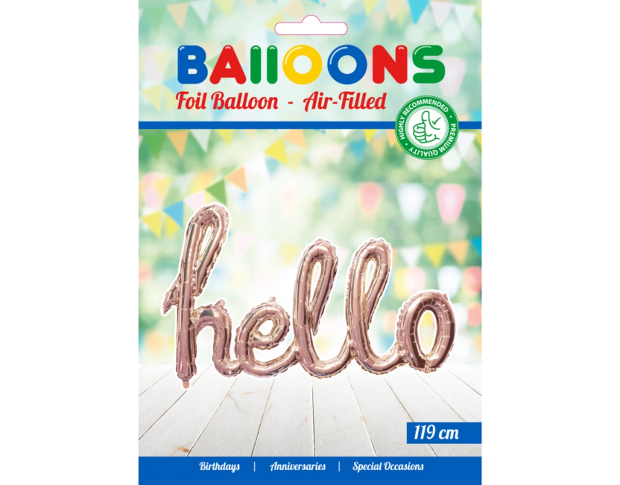 Verpakkingsinhoud: Folie Ballon Hello Rose Goud 1,19m leeg