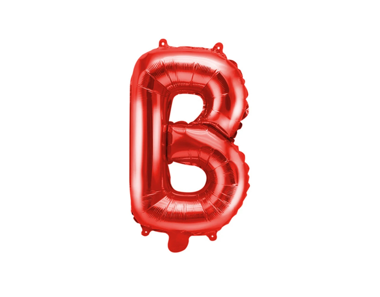 Metallic folie ballon Letter ”B”, rood, grootte voor opblazen ca. 40 cm (16”), hoogte ca. 35 cm (14”). Opblazen met lucht.