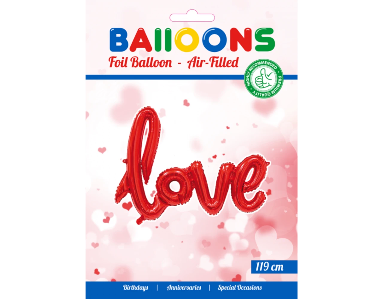 Verpakkingsinhoud: Folie Ballon Love Rood 1,19m leeg