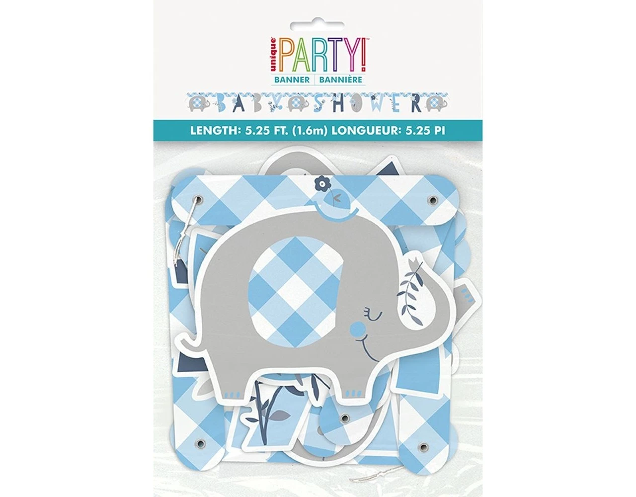 Verpakkingsinhoud: Geboorte Letterslinger Baby Shower Blauw 1,65m