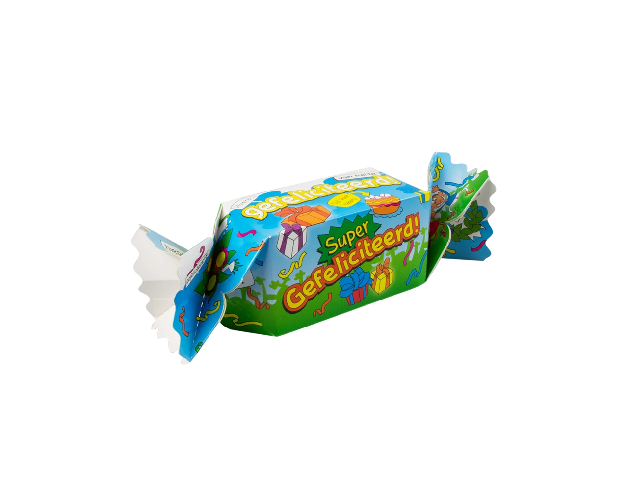 Verpakkingsinhoud: Kado / Snoepverpakking Pret – Gefeliciteerd