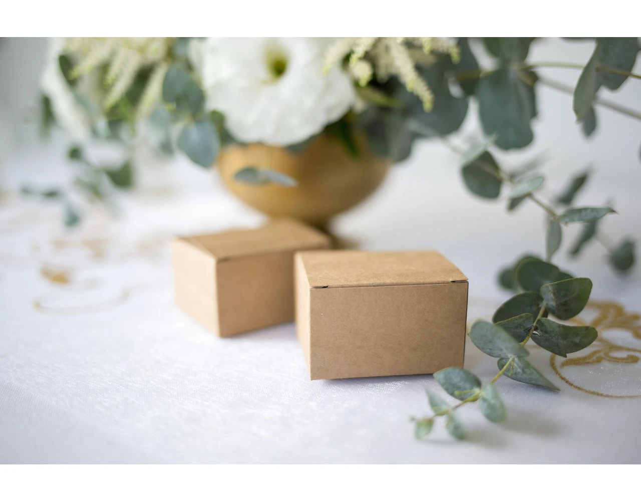 Inhoud: Dozen gemaakt van kraftpapier, maten ong. 6 x 5,5 x 3,5 cm. (1 PKT / 10 st.)